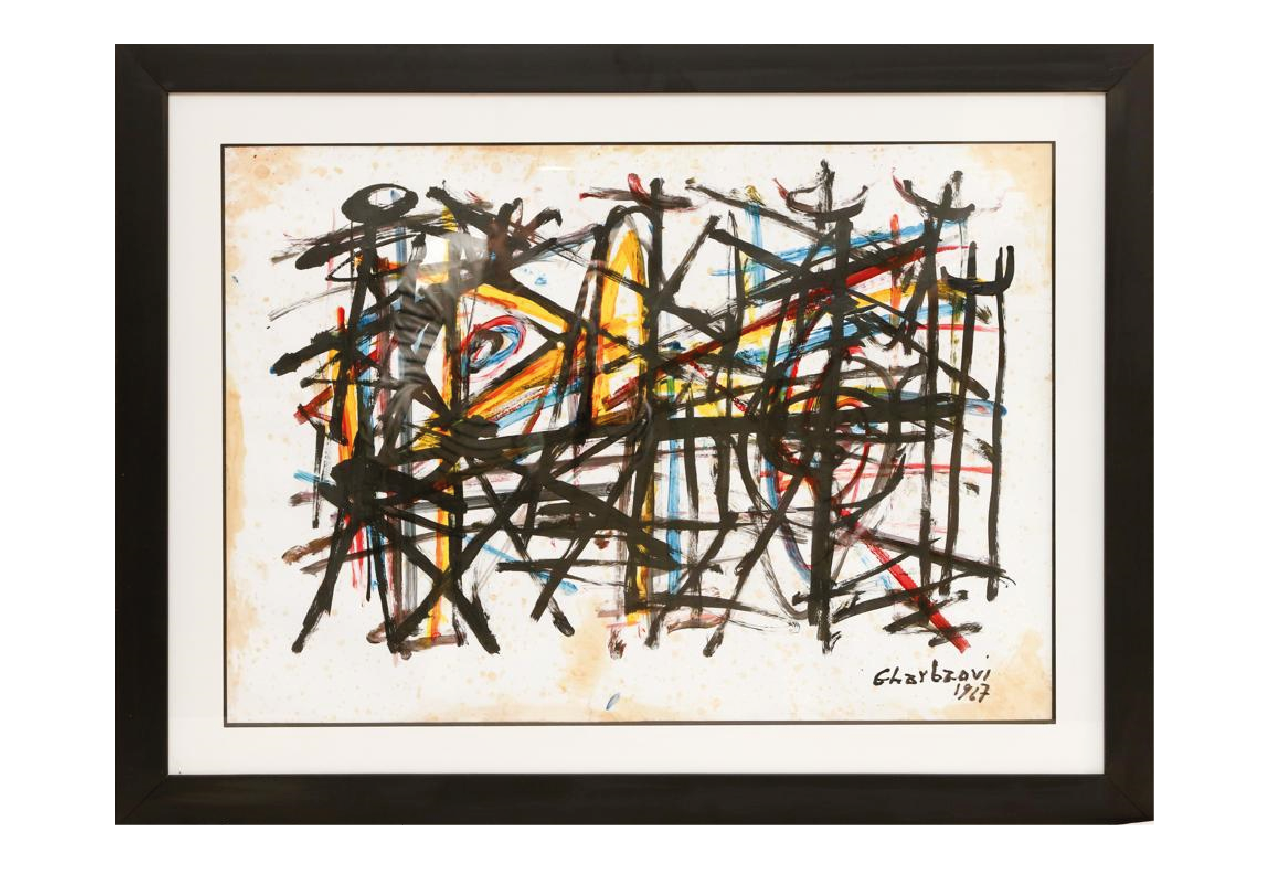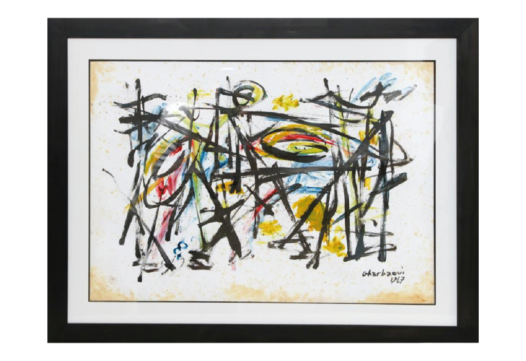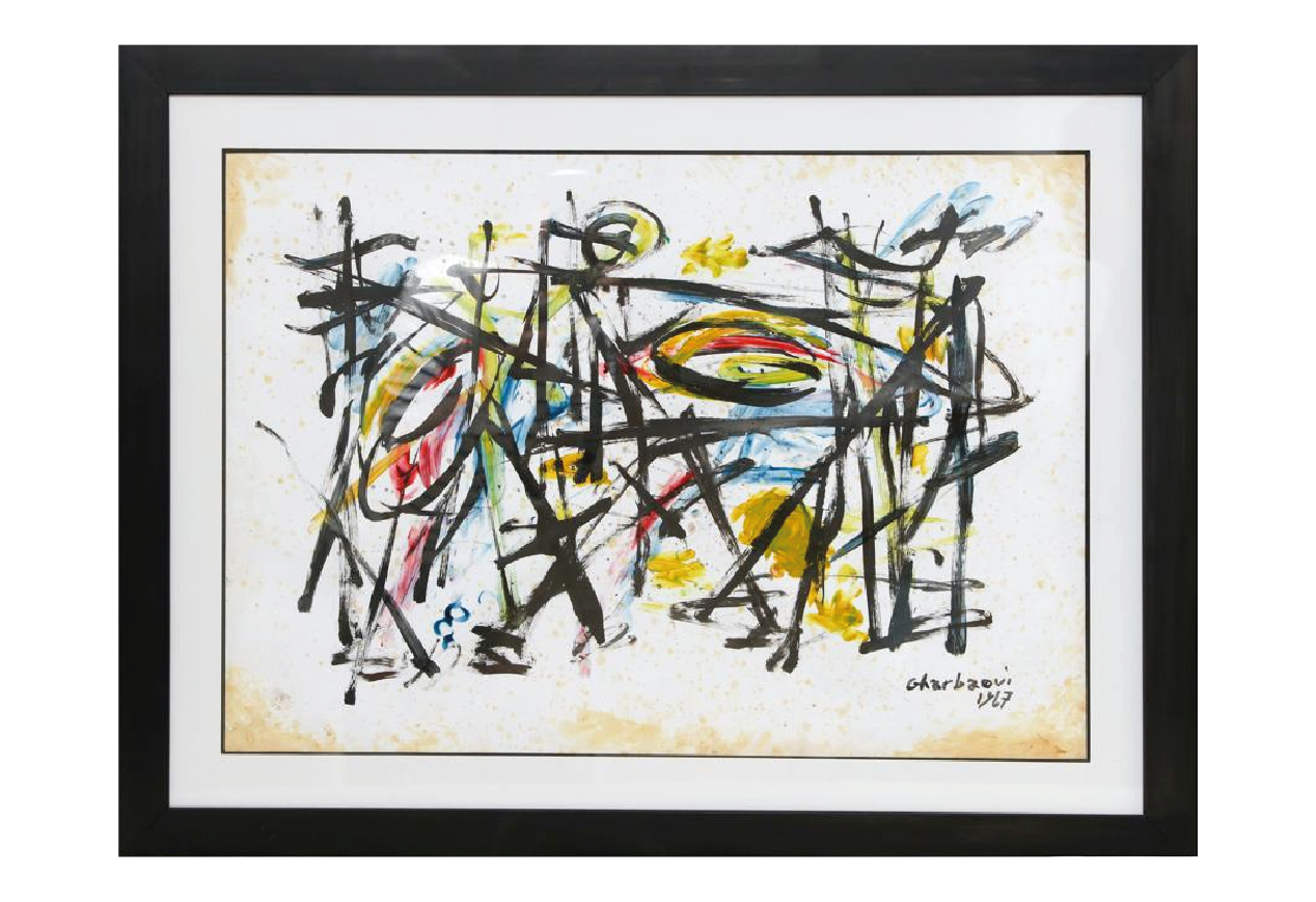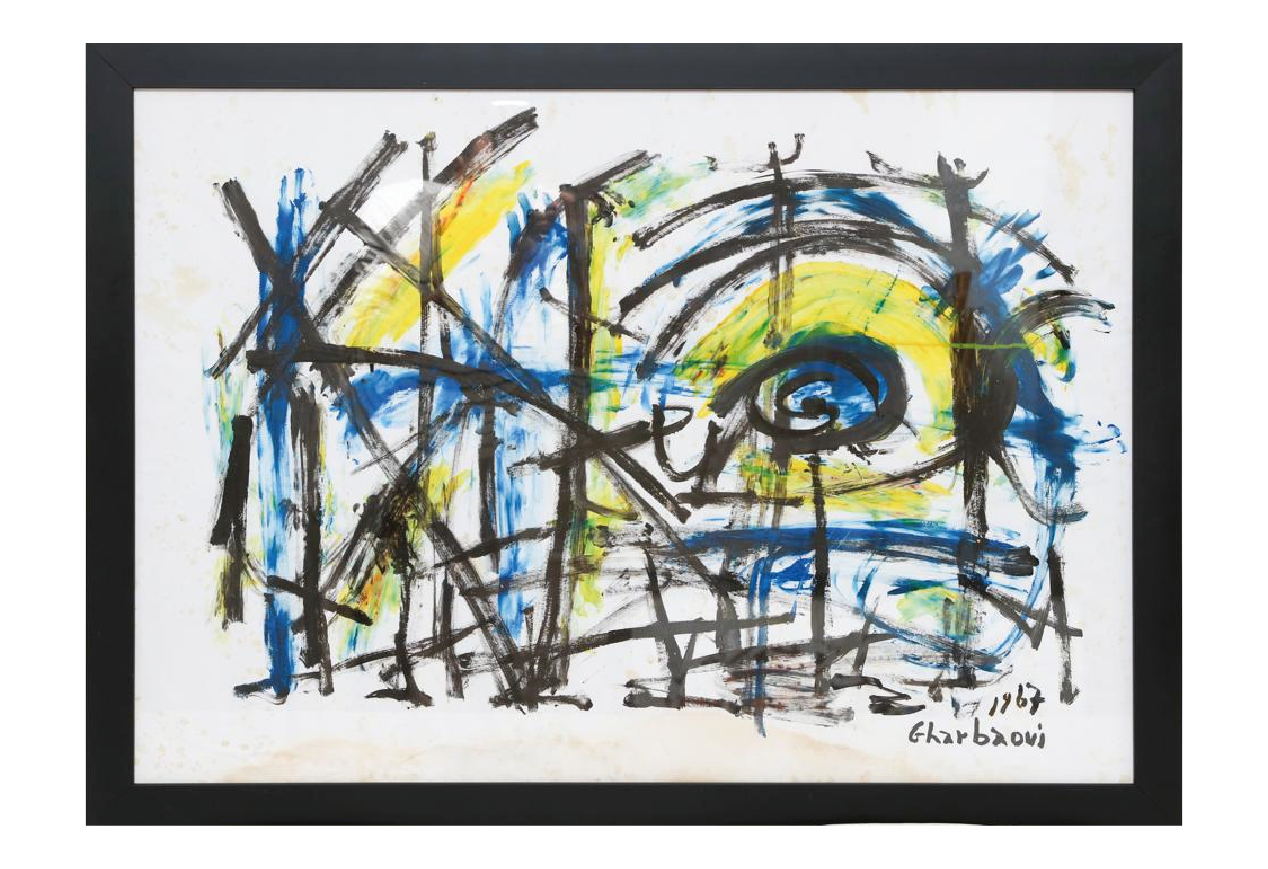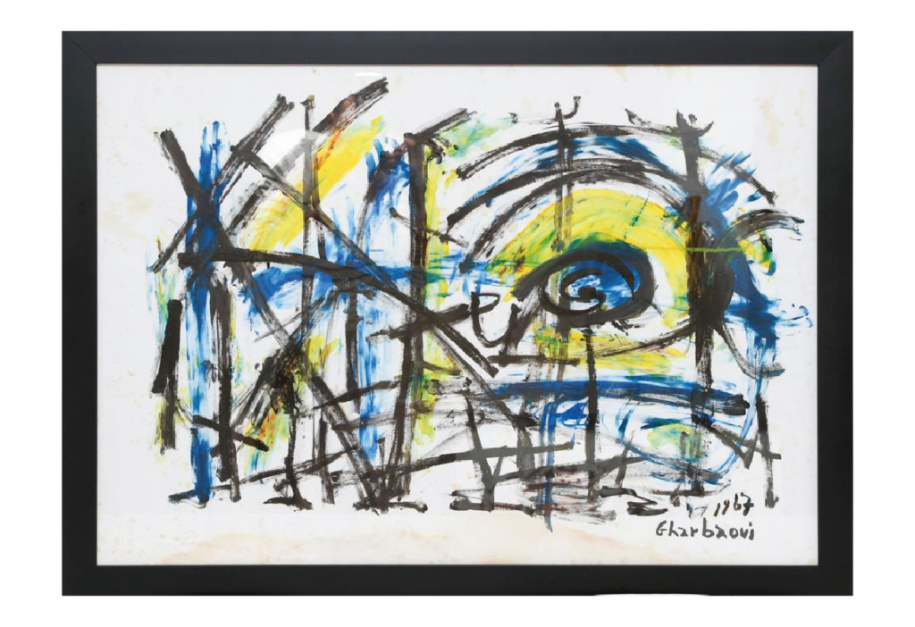 En 1959, il s’installe à Paris, rejoint le groupe des informels et expose au Japon, au Mexique et en Allemagne. Ses œuvres, marquées par une gestualité vibrante, reflètent son hyper-émotivité. Malgré des troubles personnels et des échecs sentimentaux, Gharbaoui poursuit sa création artistique, réalisant de nombreuses gouaches à Rabat. Il laisse une empreinte forte dans l’art contemporain marocain, caractérisée par une profonde intensité émotionnelle.