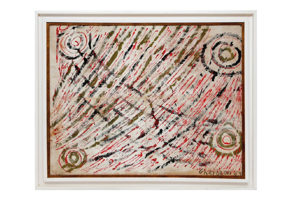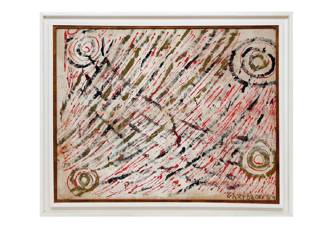 Jilali Gharbaoui, influencé par l’impressionnisme, la peinture hollandaise et l’expressionnisme allemand, commence sa carrière en se tournant vers l’abstraction. Après son retour au Maroc en 1955, il fait face à des crises personnelles marquées par des hospitalisations fréquentes. Farid Belkahya lui cède une place à l’Accademia delle Belli Arti de Rome, mais il revient rapidement, gravement malade. En 1957, il séjourne au monastère de Tioumliline et reçoit le Premier Prix lors d’une exposition au San Francisco Museum of Modern Art.