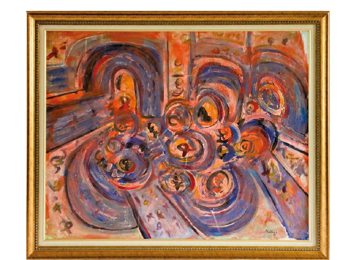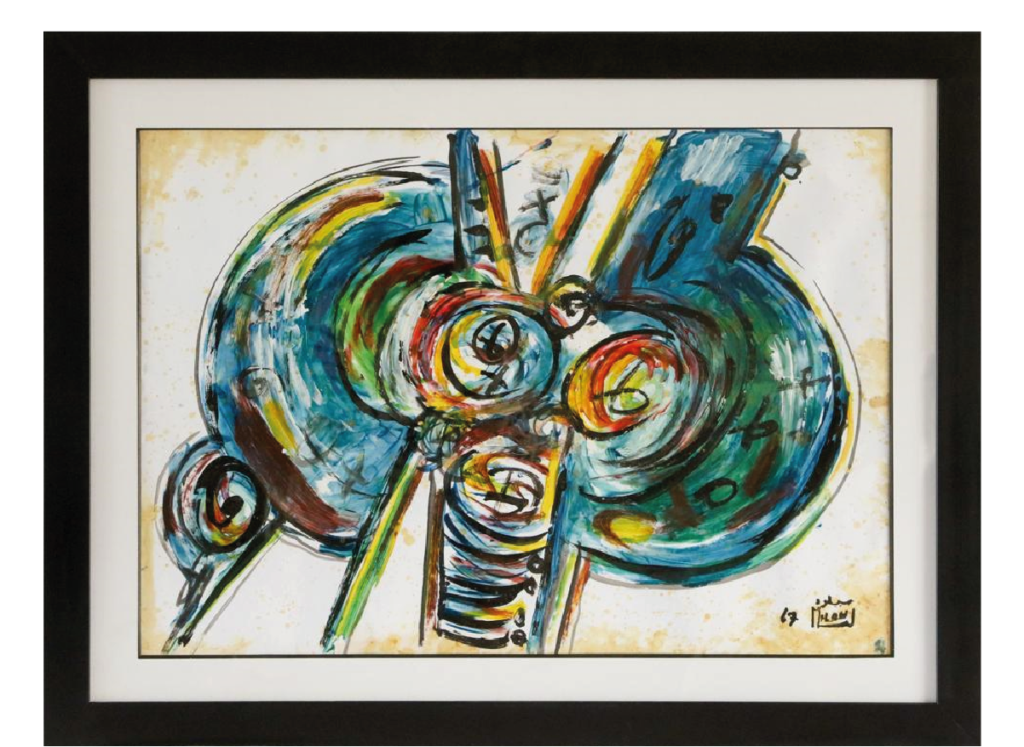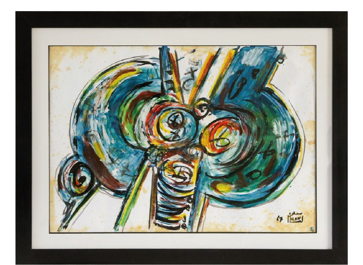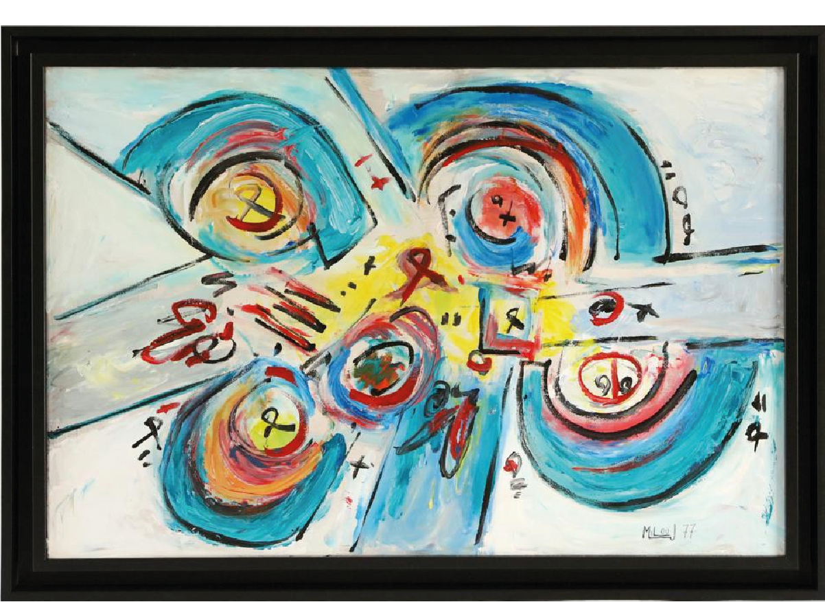 Miloud Labied (1939-2008), figure majeure de l’art moderne marocain, est reconnu pour son style coloré et dynamique qui puise ses racines dans les traditions locales tout en s’ouvrant aux influences contemporaines. Né à Marrakech, il débute sa carrière dans les années 1960 et se fait connaître par ses œuvres expressives mêlant abstraction et symbolisme. Labied développe un univers pictural vibrant, caractérisé par des formes géométriques et des couleurs éclatantes, souvent inspirées des paysages et de l’artisanat marocain.