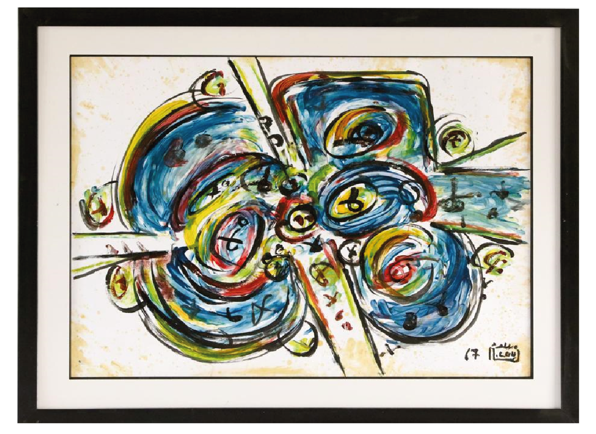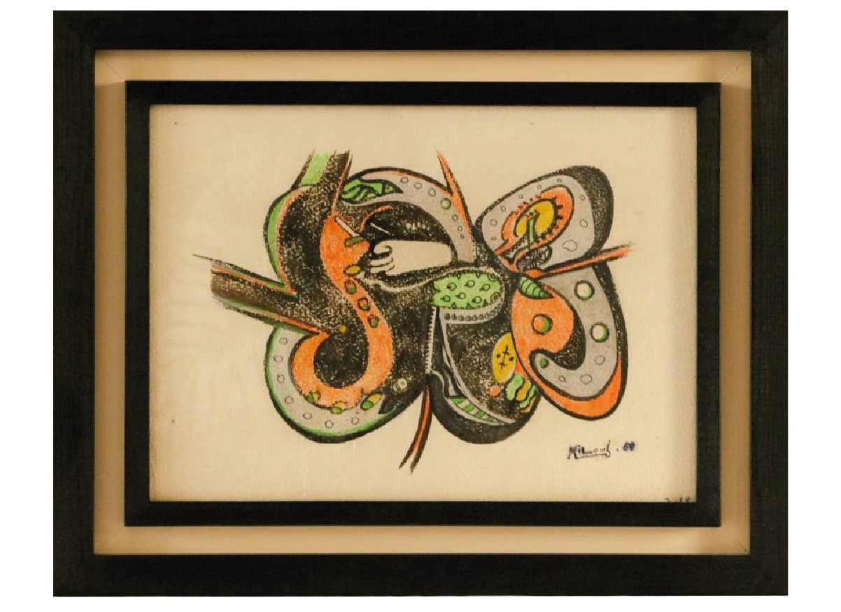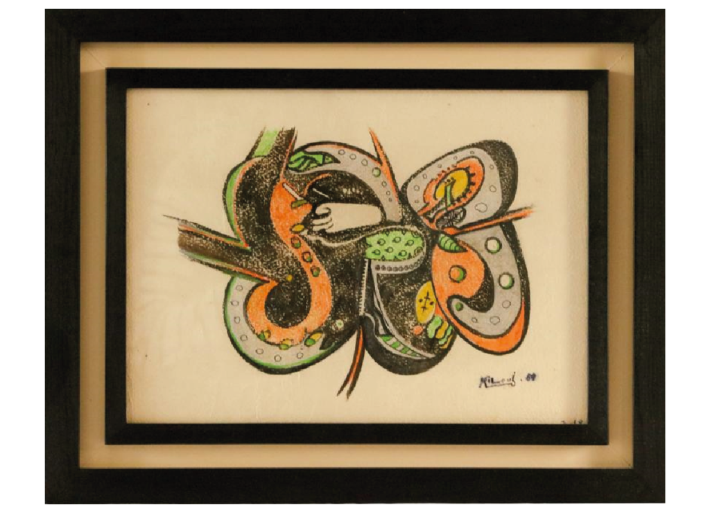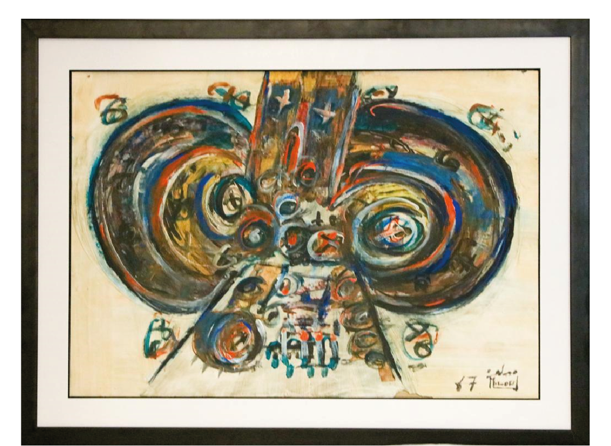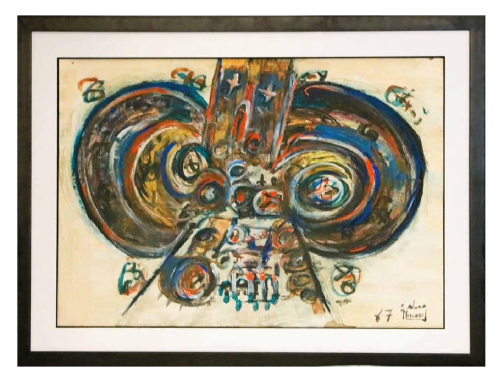 Miloud Labied (1939-2008), figure majeure de l’art moderne marocain, est reconnu pour son style coloré et dynamique qui puise ses racines dans les traditions locales tout en s’ouvrant aux influences contemporaines. Né à Marrakech, il débute sa carrière dans les années 1960 et se fait connaître par ses œuvres expressives mêlant abstraction et symbolisme. Labied développe un univers pictural vibrant, caractérisé par des formes géométriques et des couleurs éclatantes, souvent inspirées des paysages et de l’artisanat marocain.
