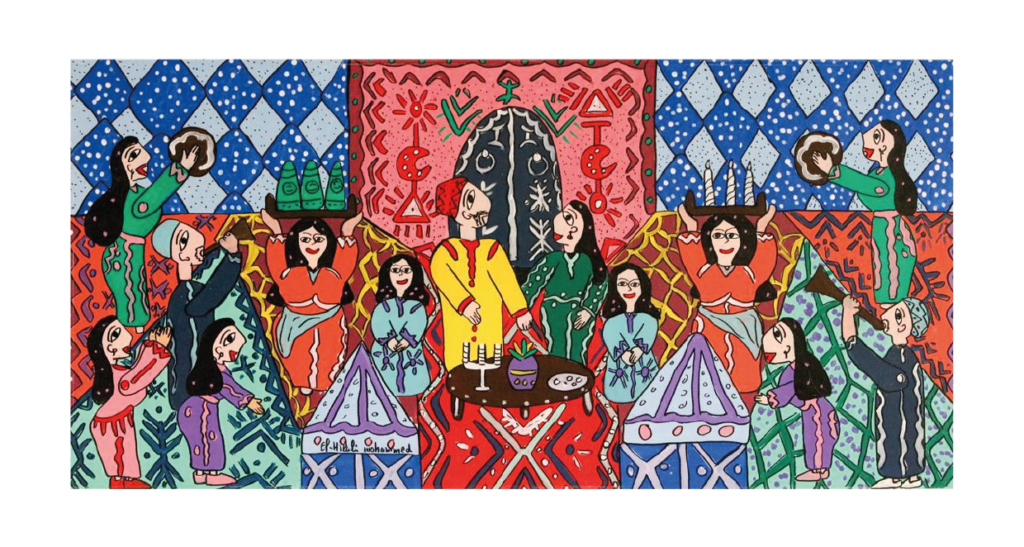 Abdellah Sadouk, né en 1950 à Casablanca, est un artiste marocain polyvalent, reconnu pour son travail en peinture, sculpture, et gravure. Formé à l’Institut National des Beaux-Arts de Tétouan, il a poursuivi ses études à Paris, notamment à l’École Nationale Supérieure des Arts Décoratifs et à l’Université Paris 1 Panthéon-Sorbonne. Sa carrière est marquée par une maîtrise des formes géométriques et une exploration audacieuse des couleurs, alliant influences cubistes et traditions marocaines.